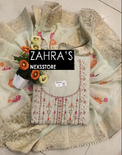 a Creamy Color Modal Chanderi Suit with Senton Bottom and Banarasi Dupatta.These suits are crafted in Gotta Pattiās work.